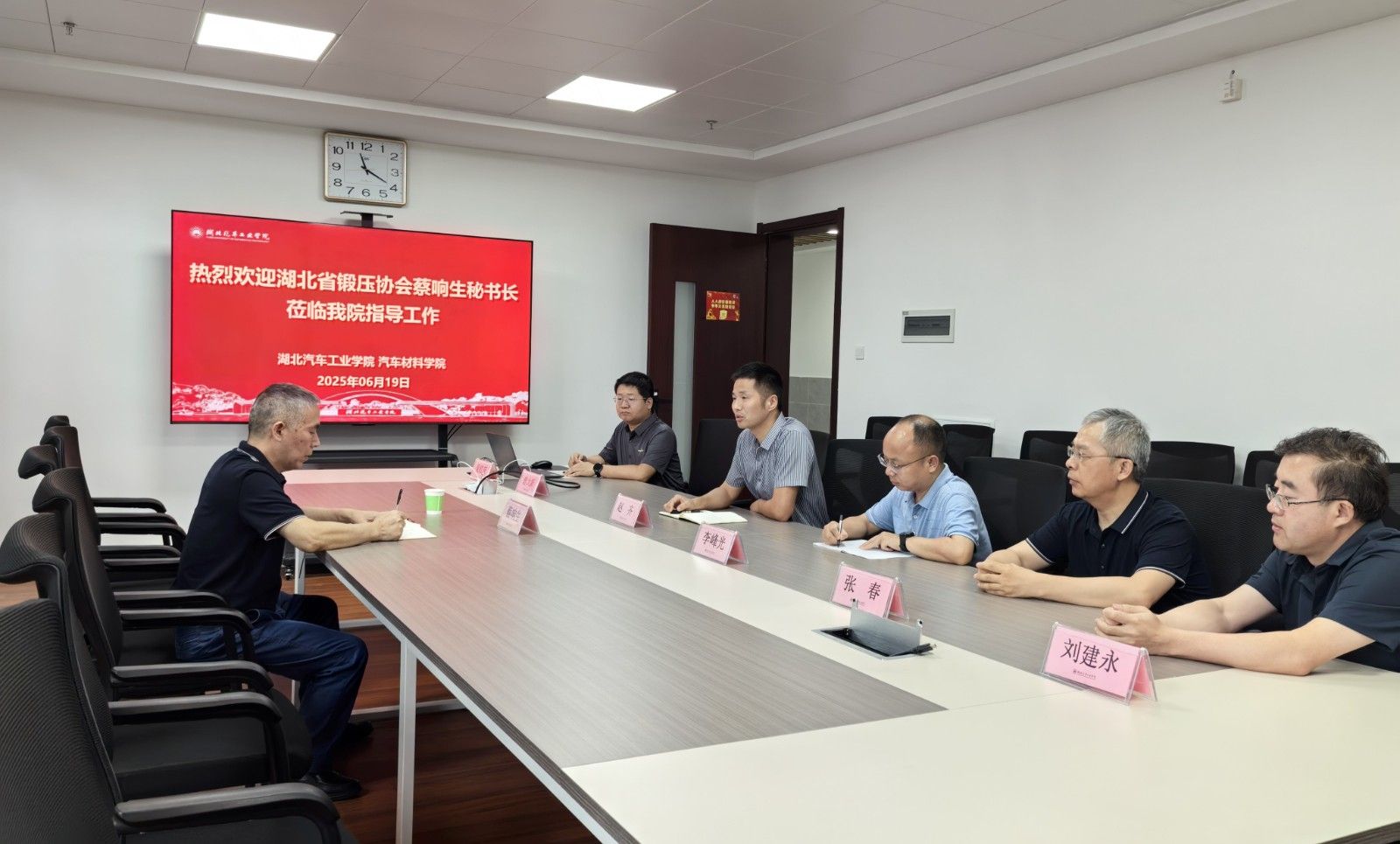 6月19日上午,湖北省锻压协会秘书长蔡响生来我校,在教育强国楼509会议室就企业与高校合作对接、人才培养及科技服务地方经济等议题展开深入洽谈。研究生院副院长李峰光、汽车材料学院副院长赵齐、湖北省汽车零部件轻量化技术转化中试研究基地主任张春及汽车材料学院骨干教师参会。